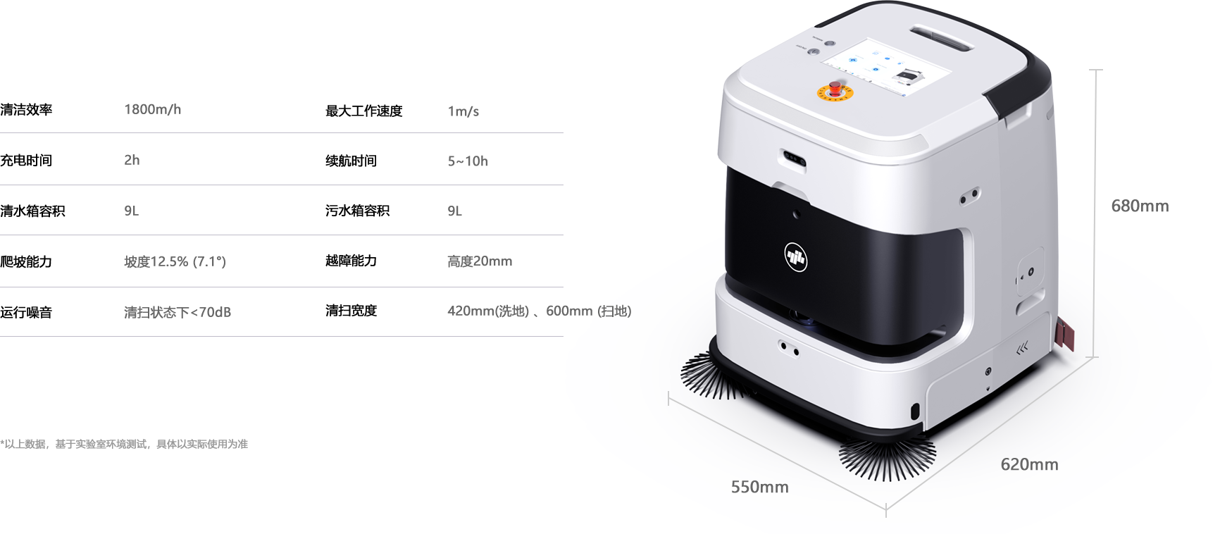 集扫地、洗地、吸尘、推尘、拖地功能于一体